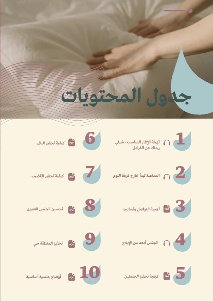ما بيقتصر على مجموعة نصايح وتقنيات، ولكن منبلّش من الأساسيات اللي بتعمل كل الفرق: فهم الرغبة الجنسية عند المرأة، بناء التواصل خلال النهار، وخلق الجو اللي فيه المتعة بتجي بشكل طبيعي.
